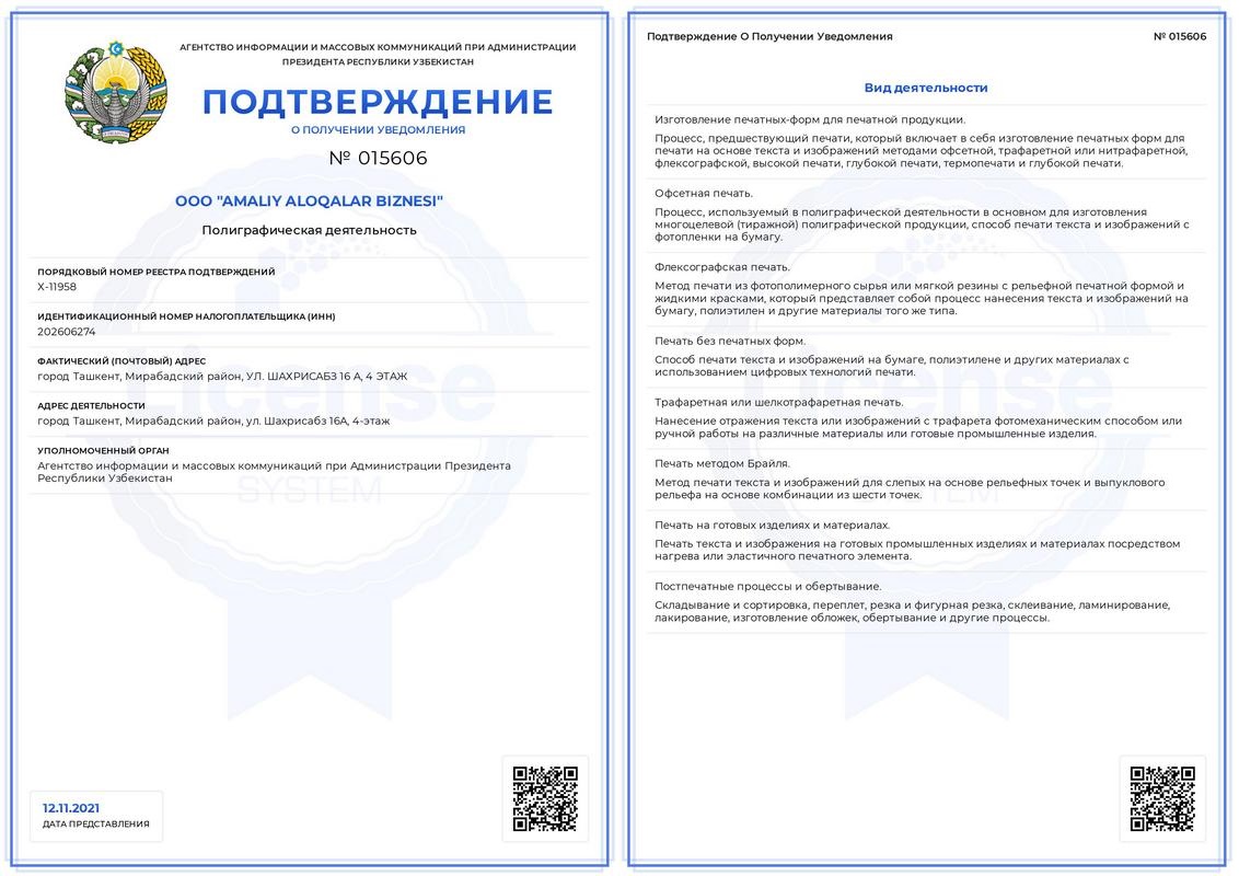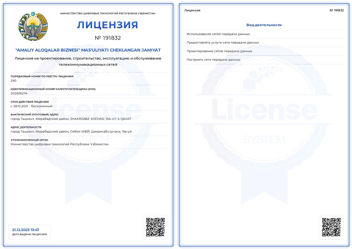 Barcha xizmatlar litsenziyalangan